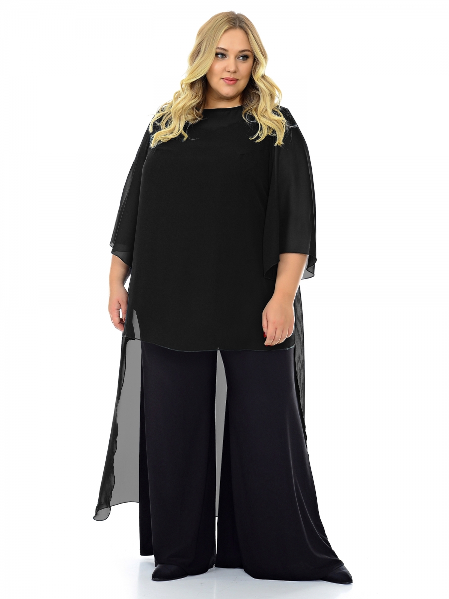 Туника разноуровневая из шифона. Силуэт свободный. Передняя часть закрывает паховую зону, спинка длинная. Рукав расклешенный.