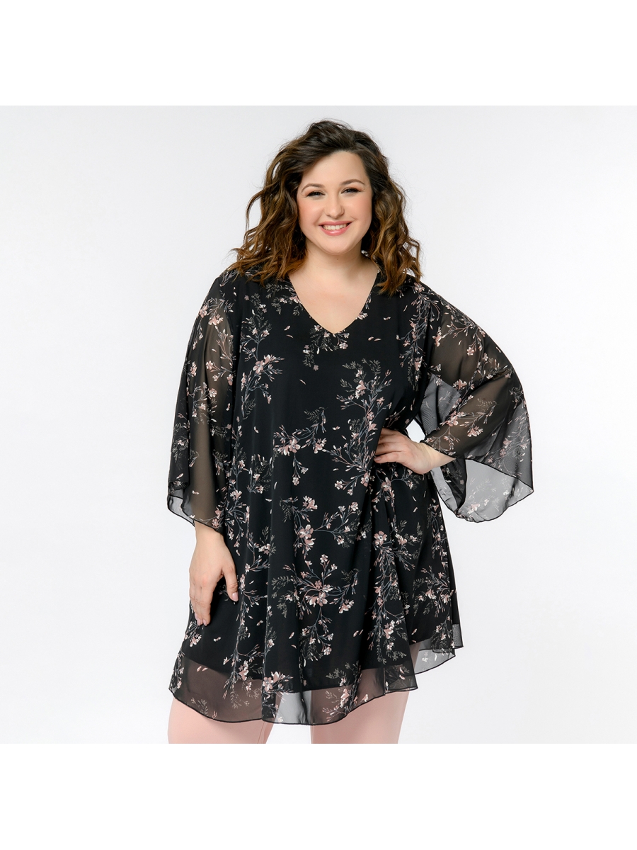 Свободная туника из шифона. V-вырез горловины. Рукав расклешенный. Идеально сочетается с джинсами, зауженными брючками.
