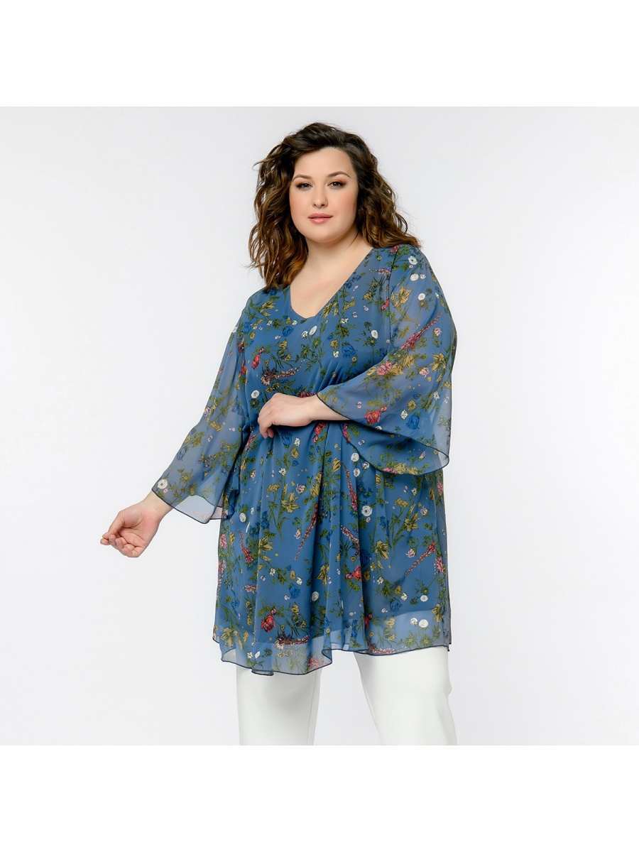 Свободная туника из шифона на тонкой эластичной подкладке. V-вырез горловины. Рукав расклешенный. Идеально сочетается с джинсами, зауженными брючками.