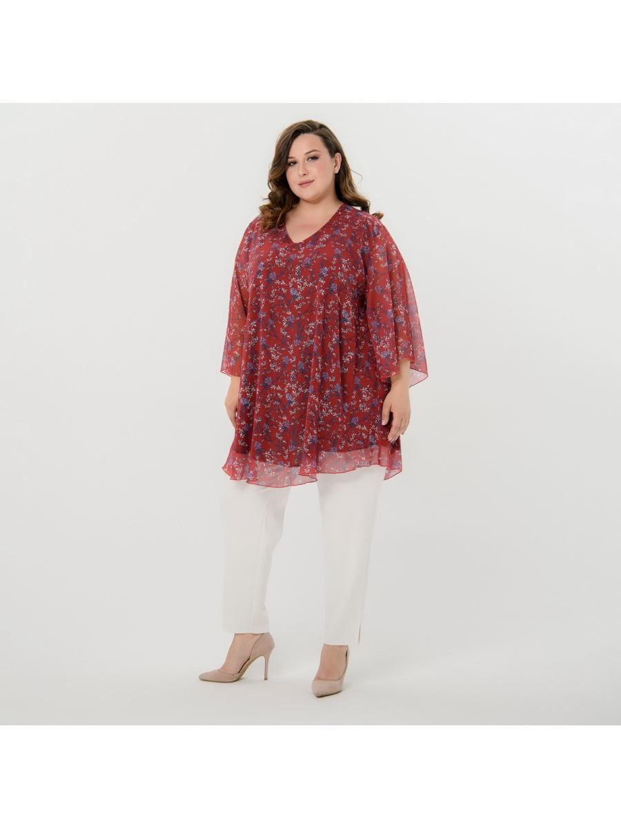 Свободная туника из шифона. V-вырез горловины по переду. Рукав расклешенный. Идеально сочетается с джинсами, зауженными брючками.