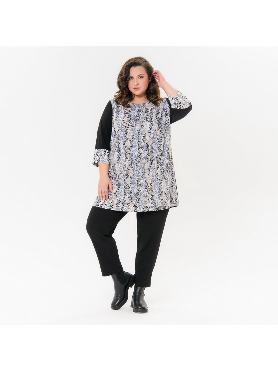 Стильная свободная туника из легкого трикотажа, комбинированного по передней части с шифоном.
