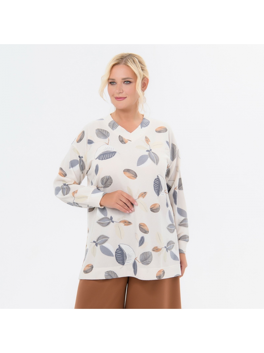 Туника А-силуэта, с V-вырезом горловины, слегка расклешенная к низу за счет боковых швов, из искусственной ангоры.