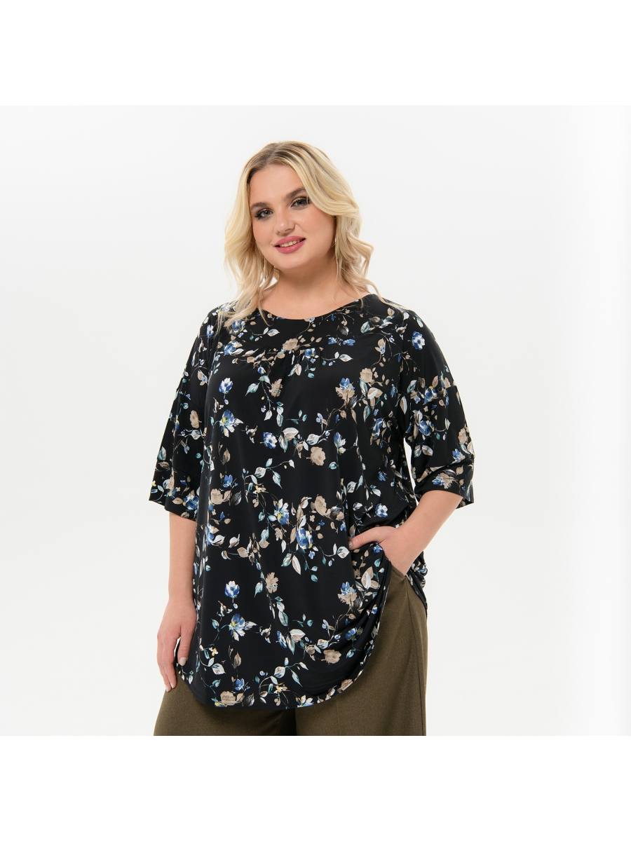 • Название: Туника свободная, черная с бирюзовыми цветами
