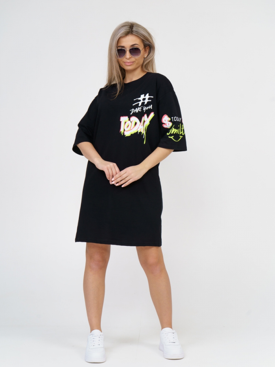 Яркая футболка, туника женская ОВЕРСАЙЗ (Oversize) с интересным принтом для дома и сна, для пляжа.Туника выполнена из кулирной глади с нанесением принта методом шелкография
