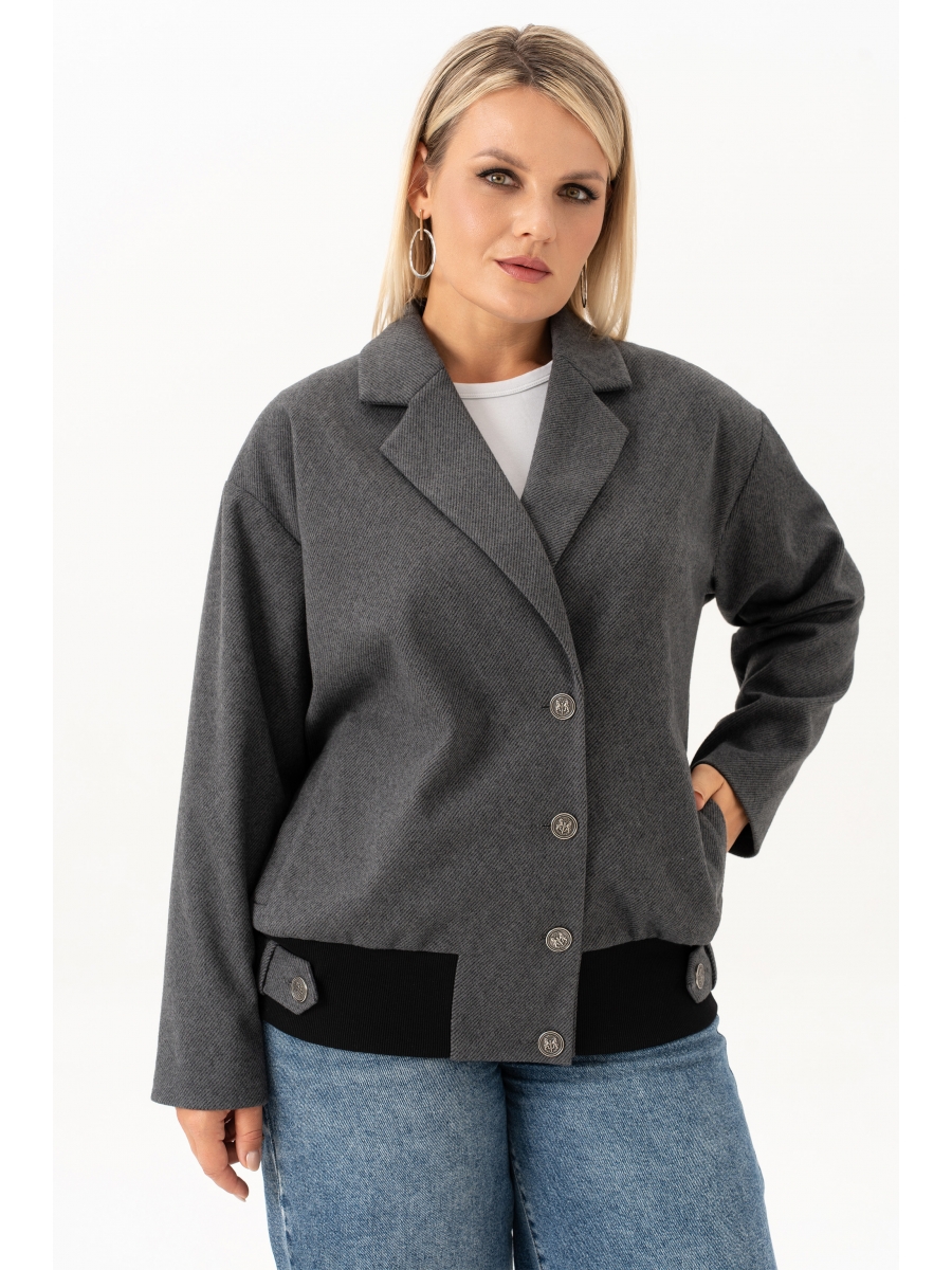 Представляем вам стильный бомбер который станет идеальным дополнением к осеннему  или весеннему  гардеробу любой девушки или женщины! Эта модель выполнена из мягкой пальтовой ткани с элементами кошкарсэ,  которая не только выглядит роскошно, но обеспечит комфорт и свободу движений . Воротник, лацкана и пата по низу изделия добавляют модели оригинальности и дерзкого шарма. На бомбере обработаны прорезные карманы с листочкой. Линия плеча слегка спущена, рукав втачной длинный.  Этот жакет - отличный выбор для прохладных осенних дней. Теплый и стильный, он станет незаменимым спутником в повседневных приключениях. Его универсальный цвет легко впишется в любой образ, а качественный материал прослужит Вам не один сезон.