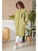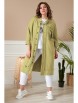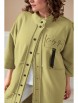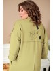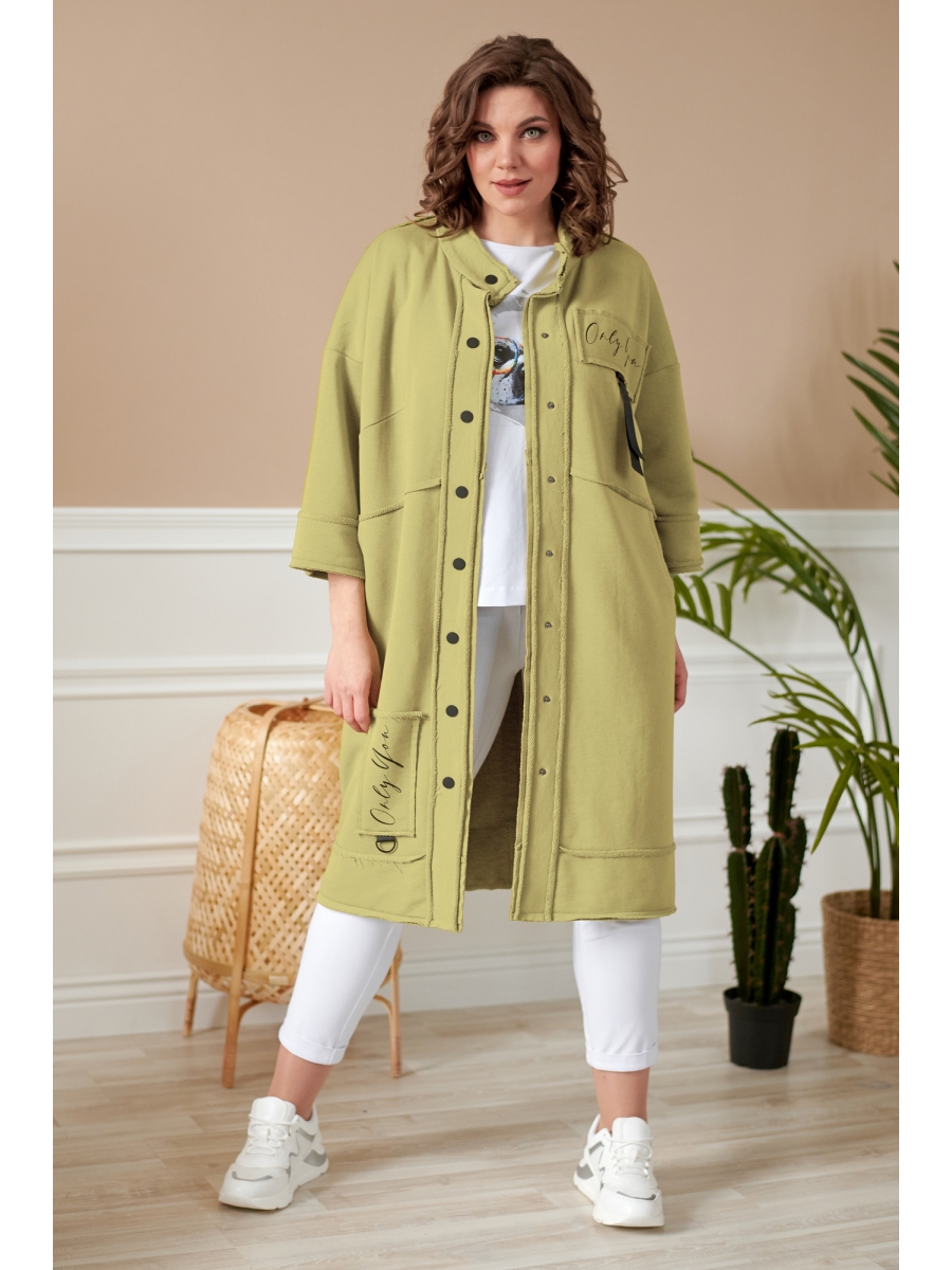 Кардиган женский прямого силуэта из трикотажной ткани (двунитка-футер). На полочке и спинке расположены декоративные, необработанные швы. В верхней и нижней части переда есть настрочные элементы с печатью и тесьмой. По переду изделия карманы. Спинка со средним швом и кокеткой. На кокетке расположен элемент с печатью и тесьмой. Рукав спущенный с манжетой. Вырез горловины оформлен стойкой. По переду изделия планка с кнопками.