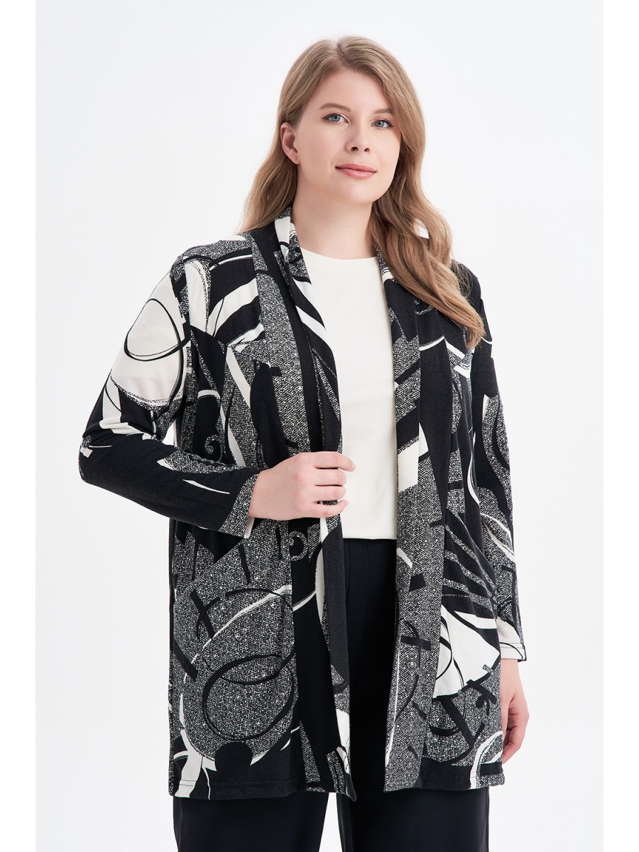 Кардиган больших размеров из мягкого трикотажного полотна с длинным рукавом, с карманнами.