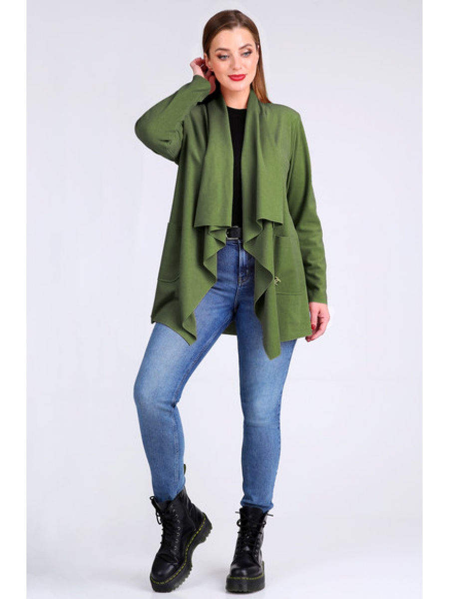 Кардиган, женский, свободного покроя, не стесняющая движений, с фигурной формой бортов. При этом он отлично защищает от холода.