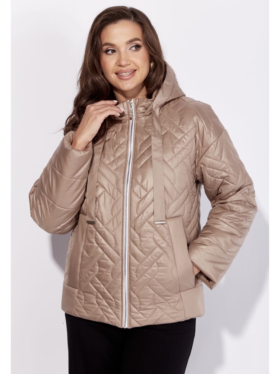 Куртка женская, прямого силуэта с длинным рукавом. Рукав со спущенной линией плеча и широкой манжетой по низу. Горловина оформлена стойкой и капюшоном с кулисой. Застежка центральная на "молнию". Спереди карманы "листочки" По низу отрезная деталь в виде пояса. Спинка задекорирована отделочной нашивкой.