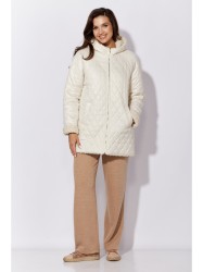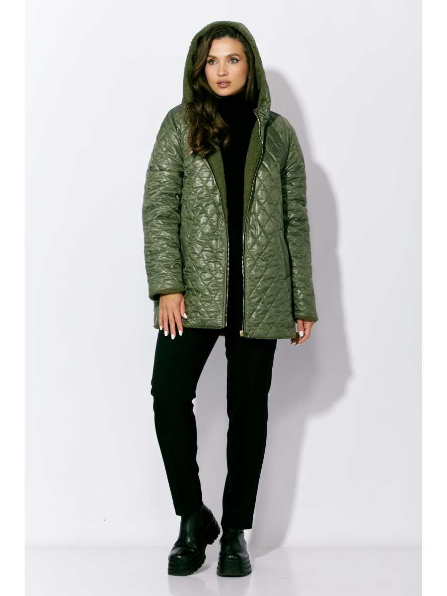 Куртка женская, демисезонная. Верх куртки - плащевка, стеганная на синтепоне. Подкладка - экомех "барашек". Куртка прямого силуэта с длинным рукавом "реглан". Длина рукава может регулироваться отворотом. По переду центральная застежка на "молнию" и прорезные, функциональные карманы. Горловина оформлена капюшоном-стойкой по переду.