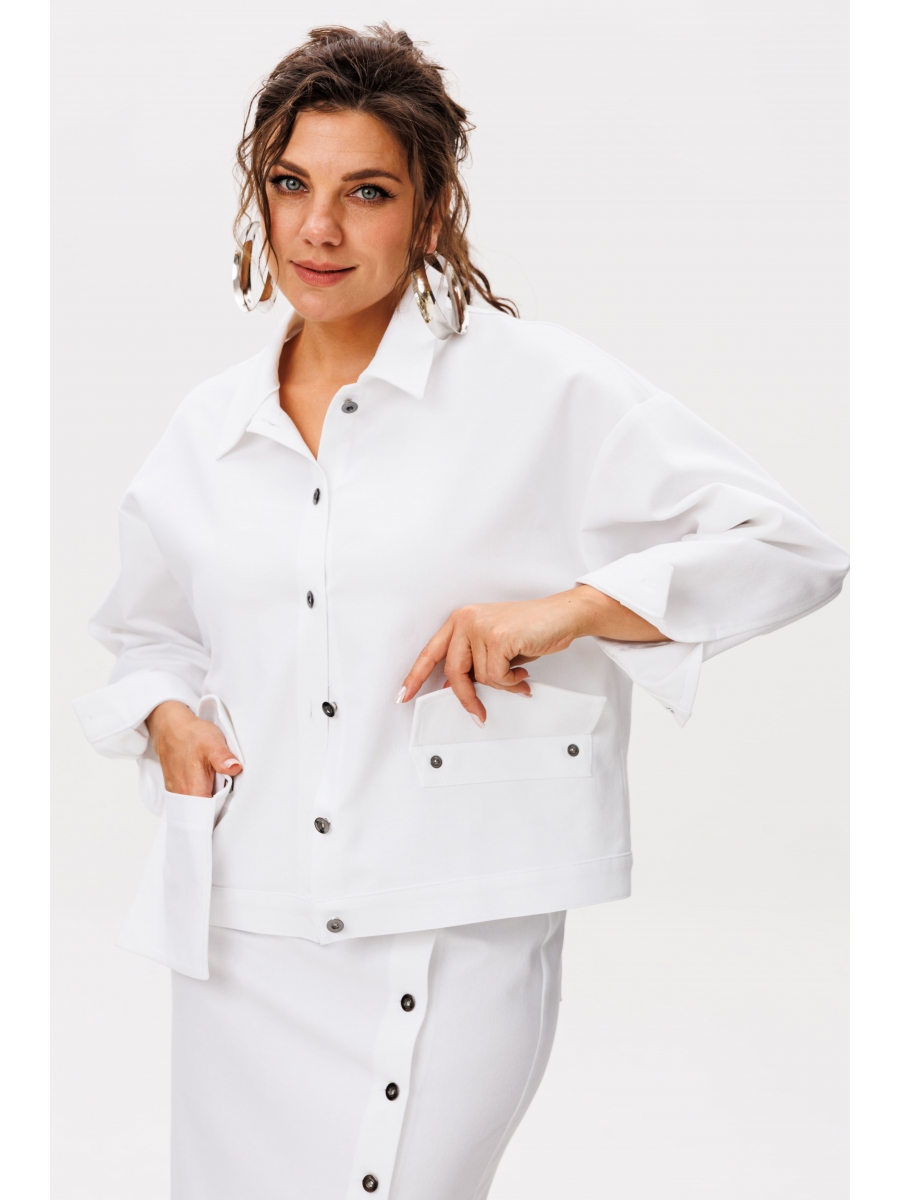 Особую изюминку модели придают два съемных кармана на кнопках – их можно отстегнуть для более лаконичного образа или оставить для практичности и стильного акцента. Ткань не сковывает движения и хорошо держит форму.