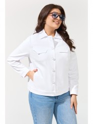 Куртка свободного силуэта выполнена из хлопкового джинса с клапанами-обманками по верху и функциональными карманами в боковых швах, рукава со спущенной линией плеча и манжетами, застежка по переду на джинсовые пуговицы-болты.