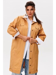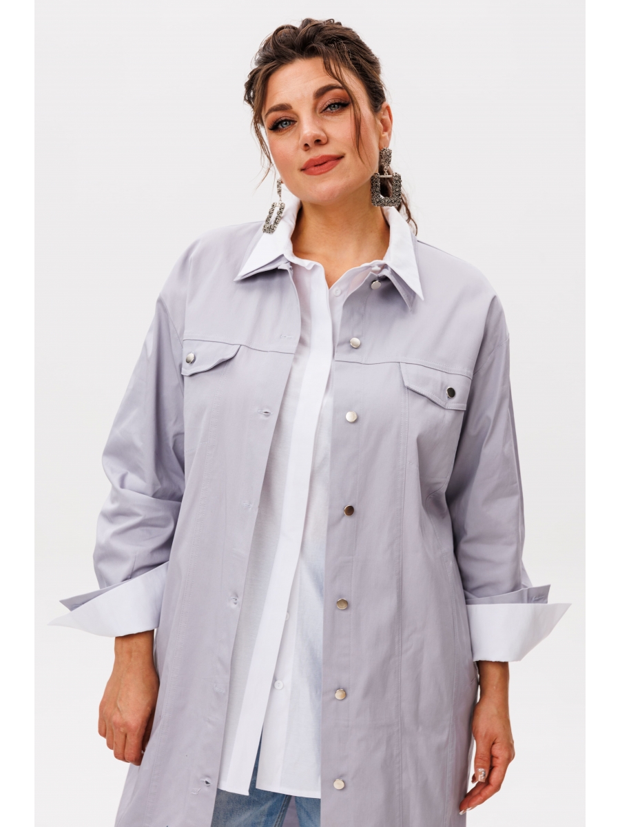 Передние кокетки с функциональными карманами, закрытыми клапанами, не только выглядят стильно, но и практичны в повседневной носке. Рубашечный воротник подчёркивает элегантность модели, а застёжка на металлические пуговицы-болты по всей длине позволяет регулировать степень открытости.