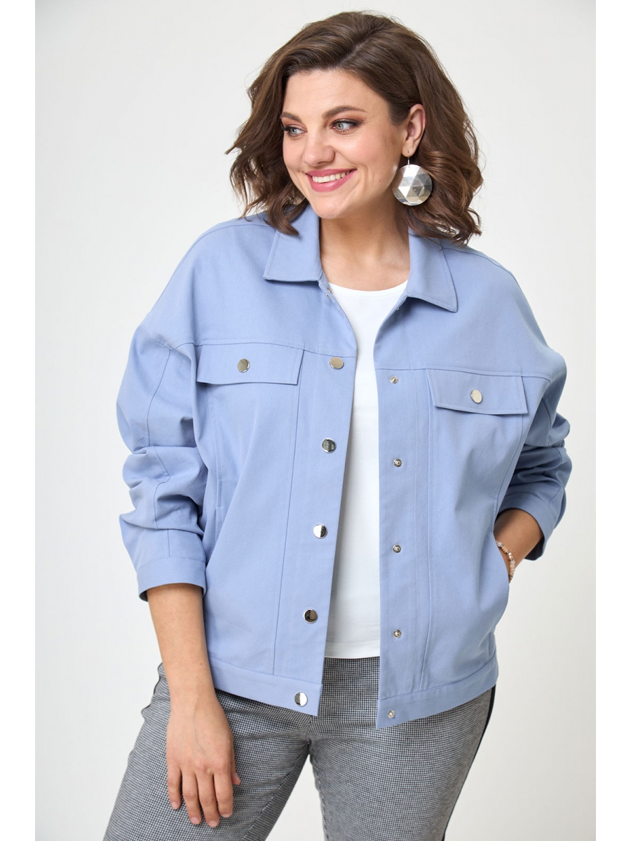 Жакет из хлопкового джинса в спортивном стиле. Силуэт прямой, свободный. Модель без подкладки. Застежка по переду на кнопки по планке. Рукав втачной, на манжете. Линия плеча удлиненная. По переду и спинке отрезная кокетка. Вертикальные рельефы по переду, визуально вытягивают силуэт. Клапаны декорированы кнопками. Воротник рубашечный, стояче-отложной. Карманы в рельефах. Легкий, свободный жакет из натуральных материалов, станет незаменимой вещью в летнем гардеробе современной девушки. Модель прекрасно сочетается как с брюками, джинсами, шортами, так и с романтическими платьями, дополняя и освежая весь образ
