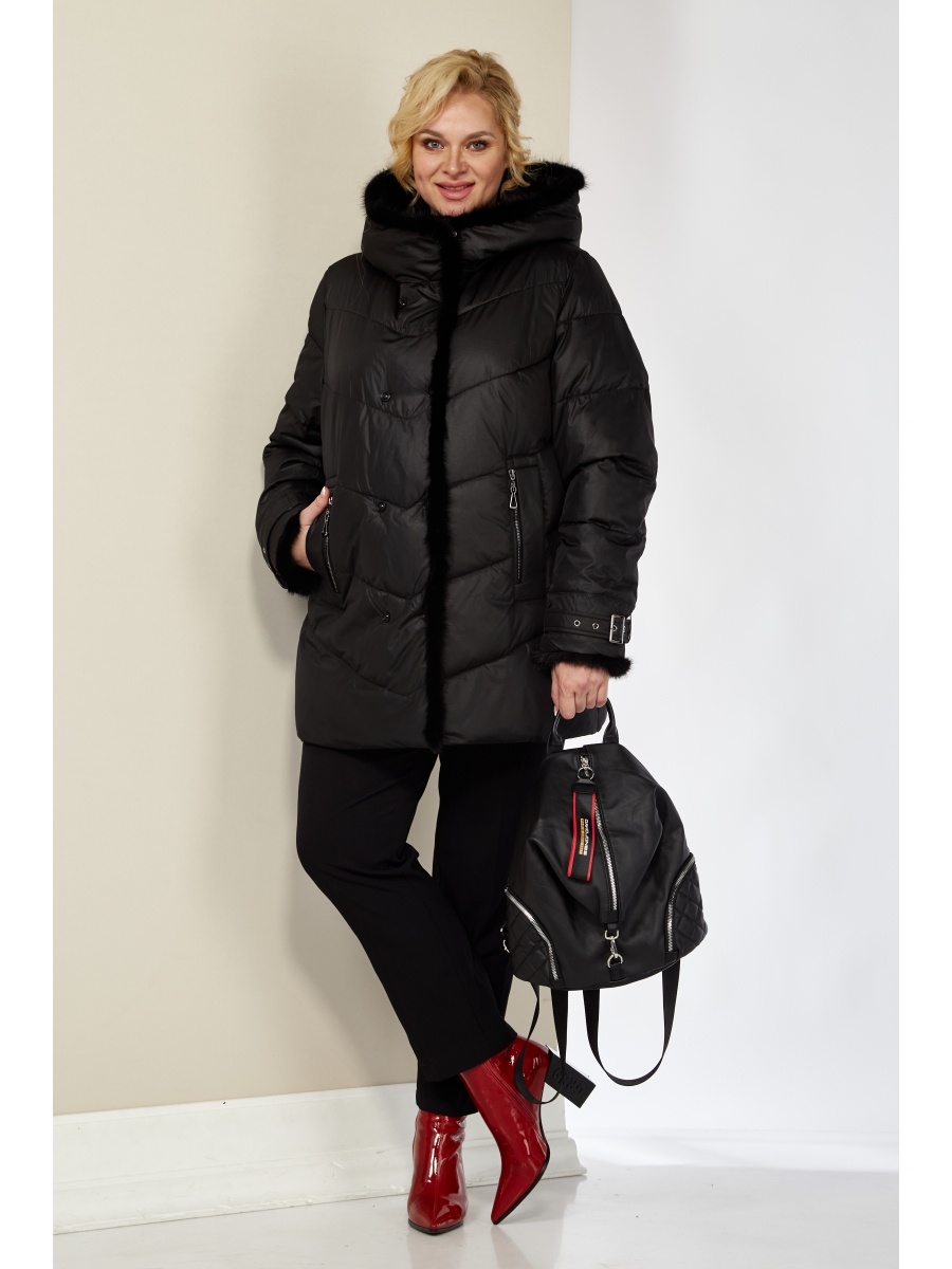 Перед с функциональными карманами на кнопках. Рукав втачной с трикотажной внутренней манжетой. Застежка центральная на молнии, с планкой на потайные металлические кнопки, а также имитация двубортной застежки. По низу рукавов, вдоль планки и по капюшону опушка из натурального меха норки (несъемная). Капюшон притачной по линии горловины, с фиксирующийся кулисой. Низ рукавов отделан декоративной застежкой в виде ремешка. С внутренней стороны куртки имеется внутренний карман. Спинка с рельефными швами. Изделие на подкладке, утеплитель Био-пух. Материал сохраняет свои качества после стирки, быстро сохнет, имеет большую воздухопроницаемость. Благодаря дорогой и качественной фурнитуре, а также отделки из натуральной норки, изделие смотрится дорого и элегантно.