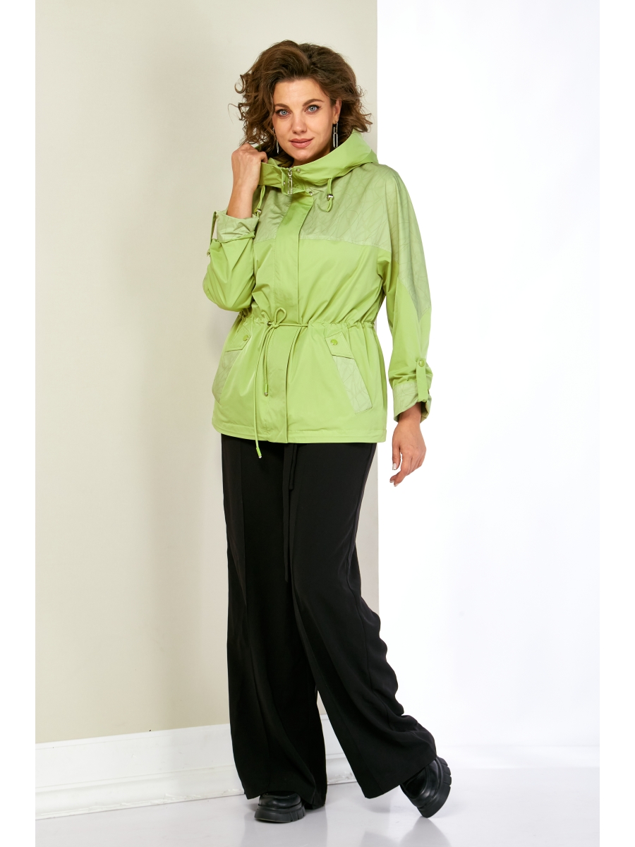 Креативность дизайна куртки заключается в ткани компаньона по отрезной кокетке, а также карманах и по манжете.