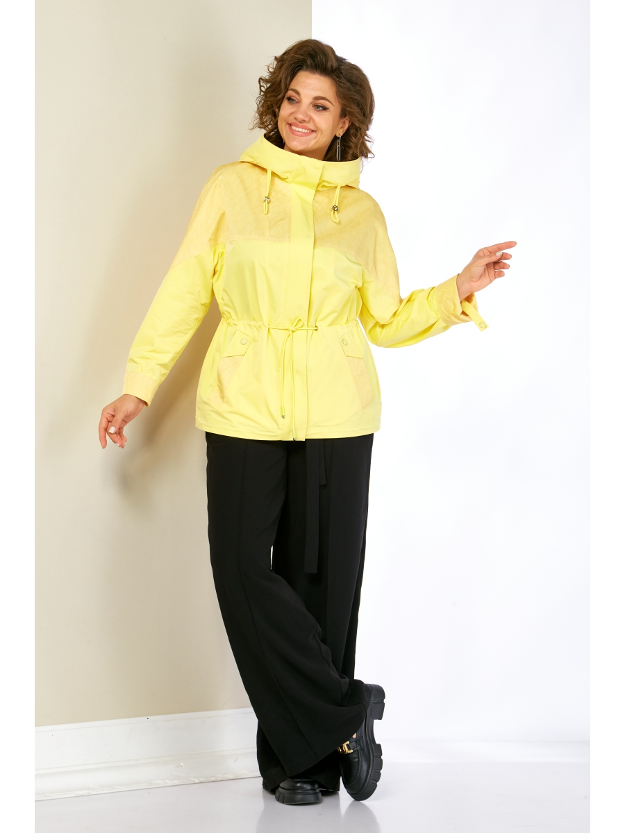 Креативность дизайна куртки заключается в ткани компаньона по отрезной кокетке, а также карманах и по манжете.
