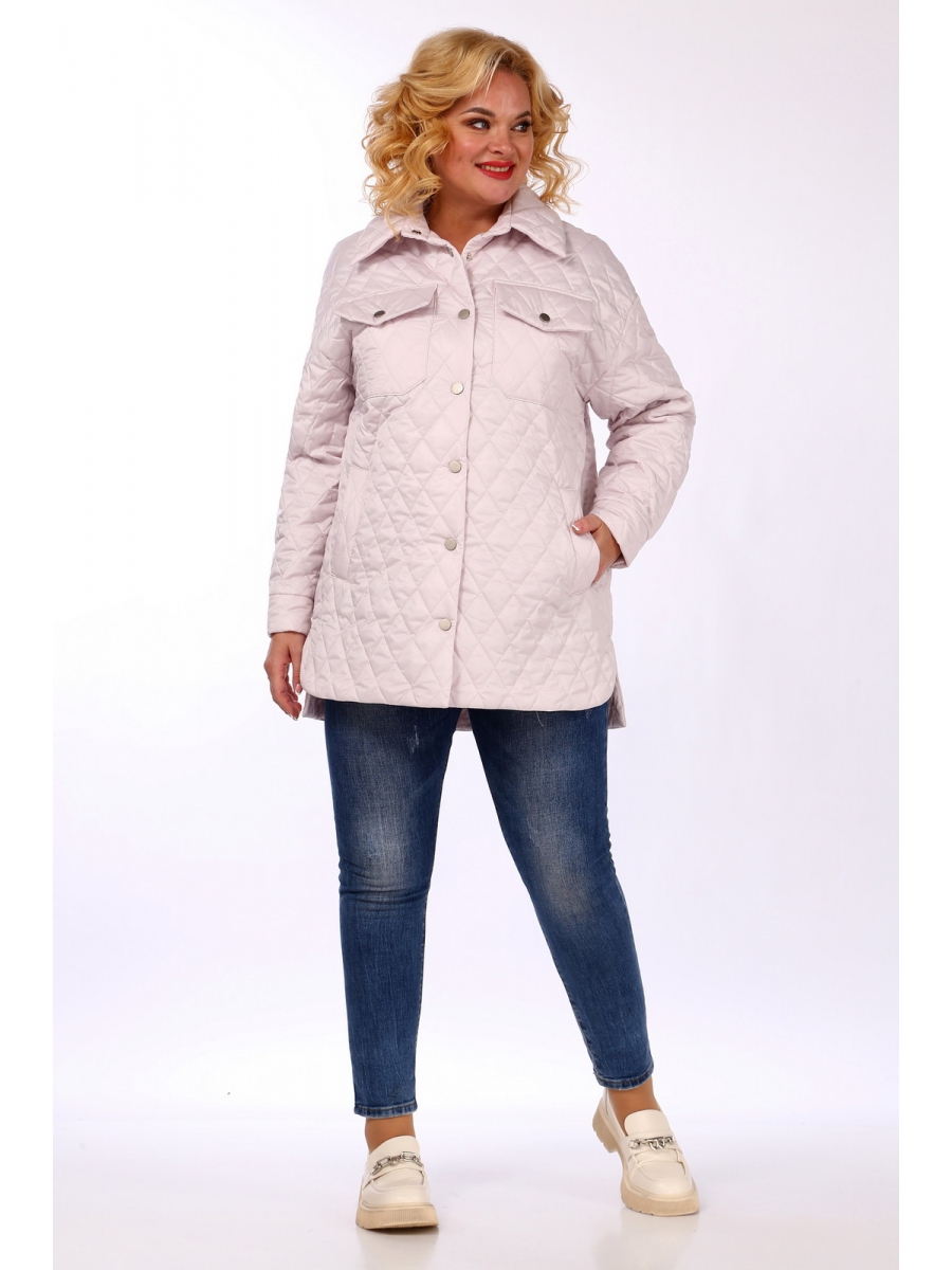 Куртка женская свободного силуэта из стеганой курточной ткани на синтепоне (наполнитель 100г/м2). Перед с накладными карманами с клапаном, застегивающимся на кнопку, также имеются прорезные карманы с листочкой. Горловина со стояче-отложным воротником. Застежка центральная на кнопки. Рукав спущенный с манжетами, застегивающейся на кнопку. Низ изделия ассиметричный. Сезон — теплая осень, температурный режим до +5С.