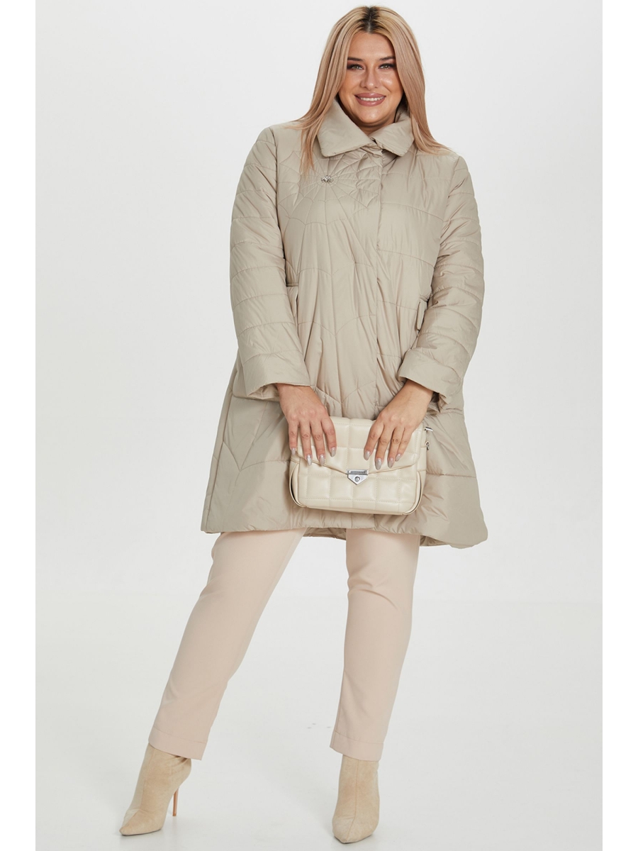 Стильное пальто расклешенного силуэта длиной до линии колен из плащевой однотонной ткани, на синтепоне с оригинальной стежкой. Модель на подкладке. Круглый вырез горловины оформлен отложным воротником. Перед с центральной застежкой – молнией, дополненной планкой на кнопках. Интересным дизайнерским решением является справа на груди оригинальная стежка в виде паутины с пауком в центре. В области бедер удобные большие накладные карманы с клапанами. Рукав длинный втачной. Низ ровный. Комфортное стильное пальто не оставит Вас равнодушной и подарит комфорт и тепло в холодное время года.