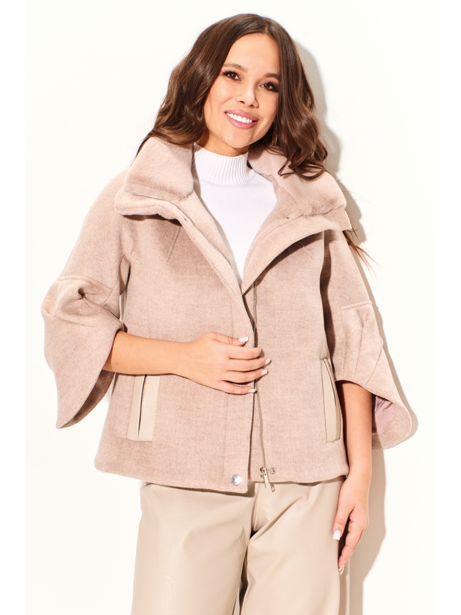 Женское полупальто (автоледи) полуприлегающего силуэта на подкладке с меховым воротником (искусственный мех с эффектом натурального). По переду прорезные функциональные карманы с отделкой из ЭКО-кожи, по линии горловины выточки, рукава цельнокроеные с отрезной манжетой и мягкими складками по низу рукава, которые добавляют изысканности и украшают руку; застежка на молнию и кнопки. Полупальто полностью соответствует заявленному размеру.