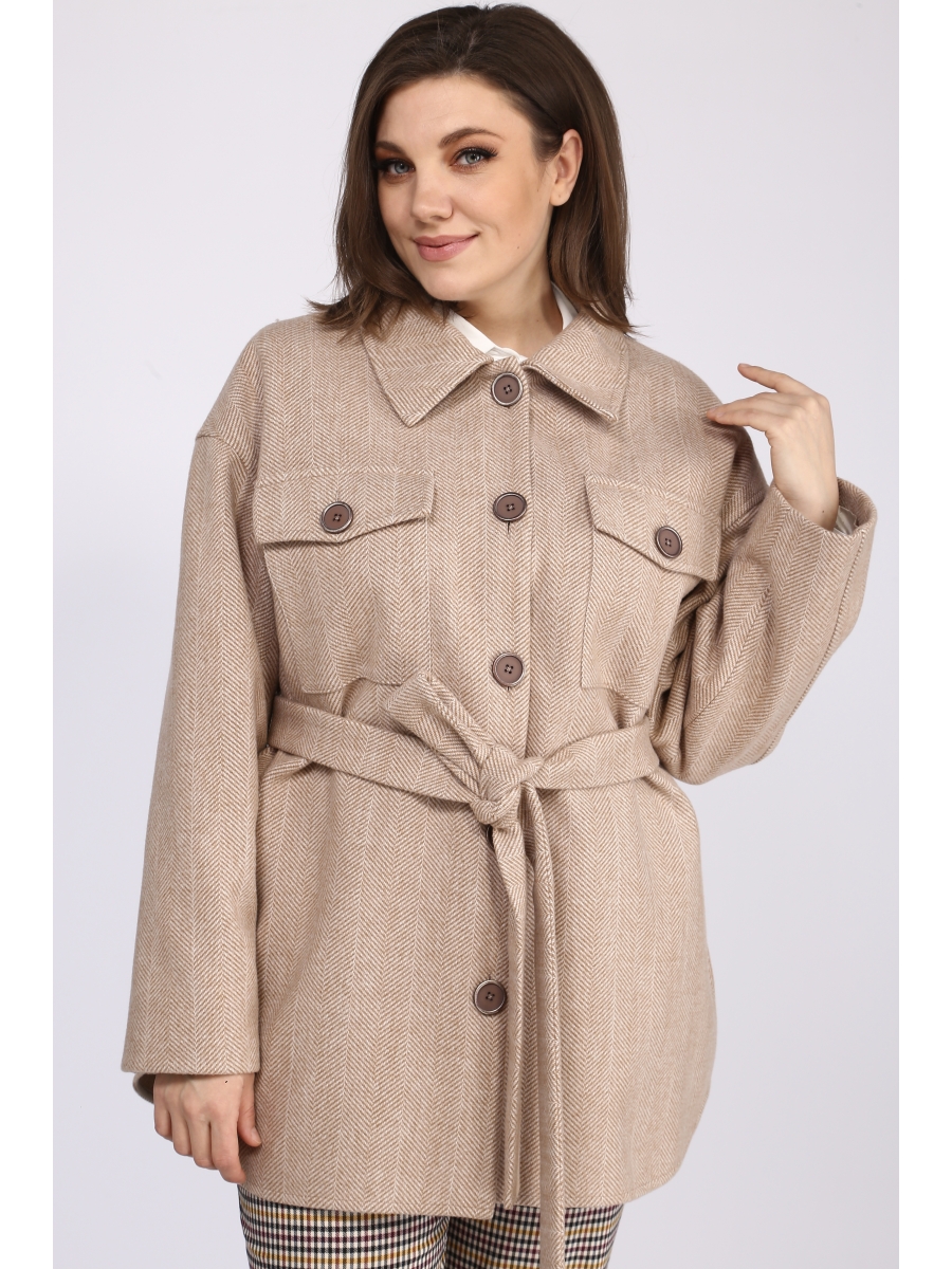 Оформить заказ →Жакет-рубашка прямого силуэта с рукавами втачного покроя со спущенной линией плеча. Застежка центральная на петли и пуговицы. По переду функциональные накладные карманы с клапанами фигурной формы с застежкой петлю и пуговицу. По спинке кокетка. Рукав втачной, двухшовный. Воротник отложной на частичной стойке. По низу изделия отлетная подкладка.