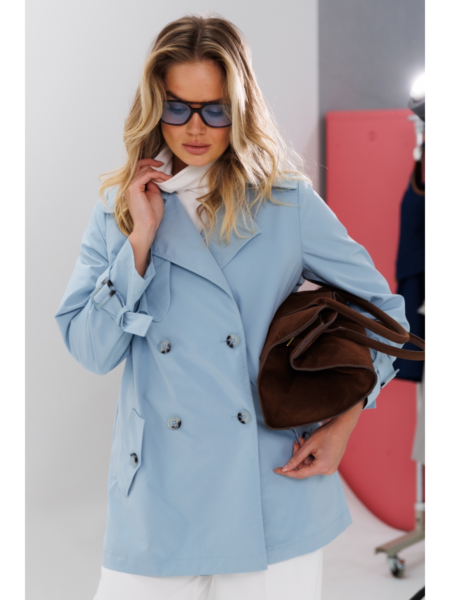 Этот элегантный укороченный серо-голубой тренч – идеальный выбор для стильной и уверенной женщины. Классический двубортный фасон с пуговицами и широкими лацканами придает образу аристократичную строгость, а легкий, струящийся материал делает его универсальным для любого сезона. Регулируемые ремешки на рукавах добавляют утонченности, а практичные карманы обеспечивают комфорт и удобство. Этот плащ гармонично сочетается с классическими брюками и массивной обувью, создавая образ современной городской модницы. Независимо от обстоятельств, он подчеркнет вашу элегантность и безупречный вкус.