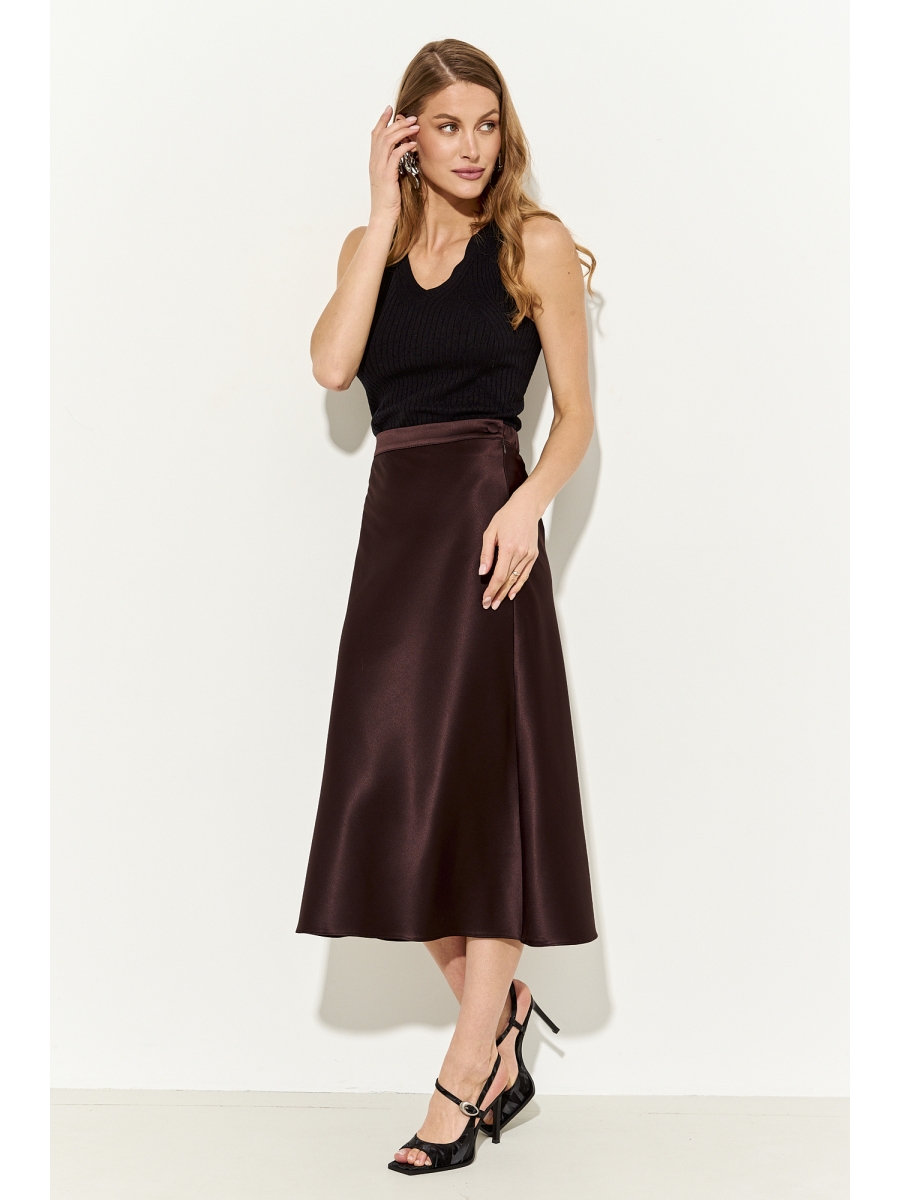Оформить заказ →Юбка миди прилегающего силуэта из струящейся сатиновой ткани с добавлением шелка; пояс притачной, в боковые швы которого вставлена резинка для лучшего прилегания; застежка на молнию, петлю и пуговицу.