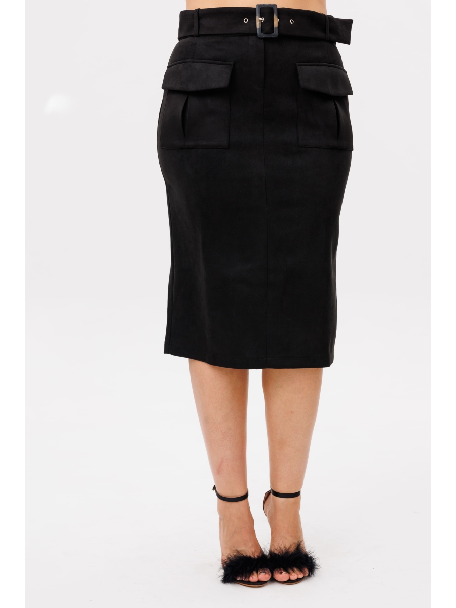 Классическая юбка из плотной эко-замши — это универсальная основа гардероба. Практичная ткань зарекомендовала себя как долговечная и устойчивая к повседневной носке. Строгий цвет придает модели лаконичный и минималистичный вид.