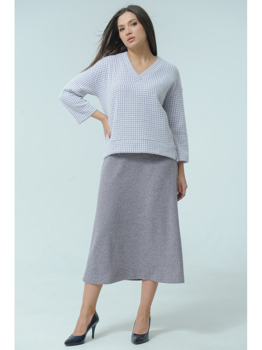 Юбка будет идеально смотреться с нашим ждемпером 1059 (на фото) или оба изделия можно купить костюмом 3029.
