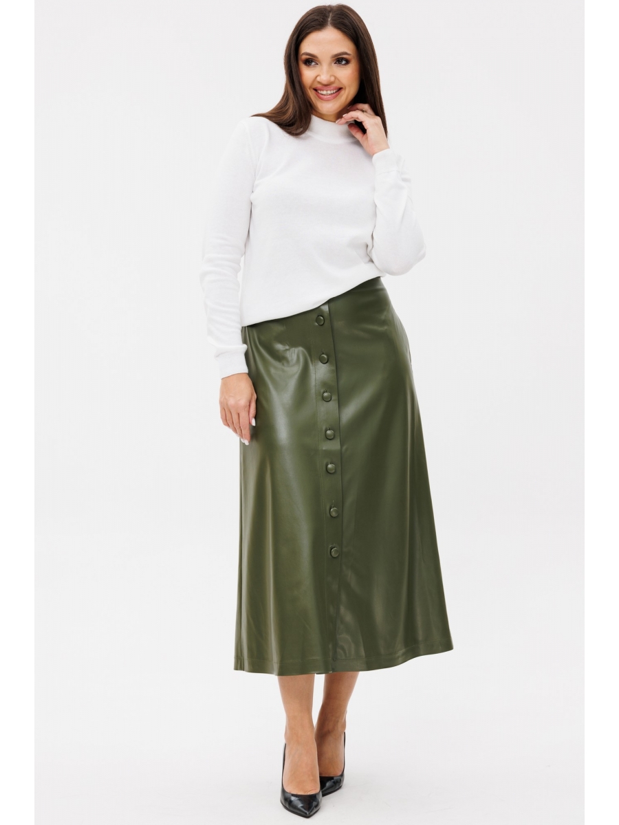 Спереди центральная застежка на петли и пуговицами. Верх юбки на обтачке. Задняя половинка цельная с талиевыми вытачками. В боковых швах функциональные карманы.