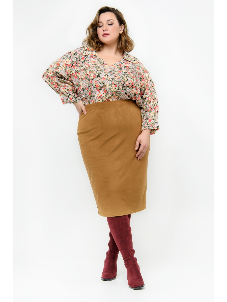 Классическая юбка-карандаш, зауженная к низу, из экозамши на подкладке. Верх на широкой резинке, не стесняющей движение.