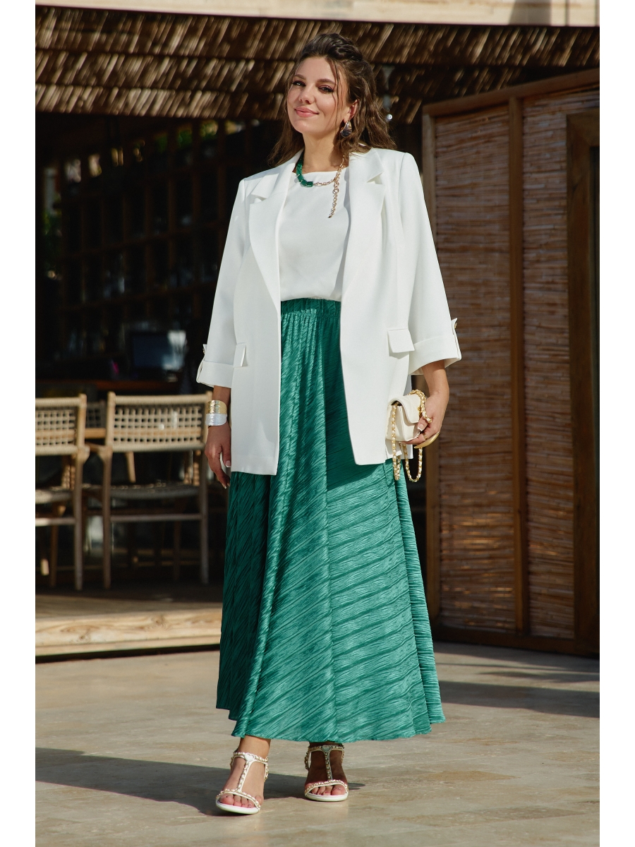 Крой юбки уравновешивает визуально бёдра и создаёт плавный силуэт.