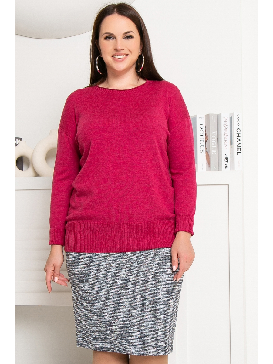 Юбка женская из трикотажного полотна букле, полуприлегающего силуэта, зауженная к низу, без подклада. Спинка с застежкой на потайную молнию и с открытой шлицей в среднем шве. Пояс с застежкой на петлю и пуговицу.