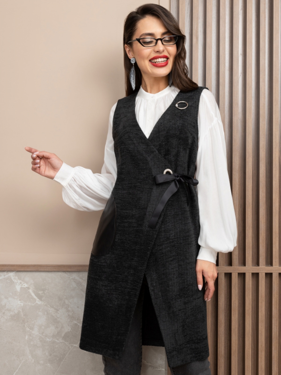 В стиле Шанель - хитовый жилет! Модное изделие прекрасно смотрится на леди с любым типом фигуры. Элегантная брошка в комплекте. Изделие с люверсом, смотрится дорого. Надо брать!