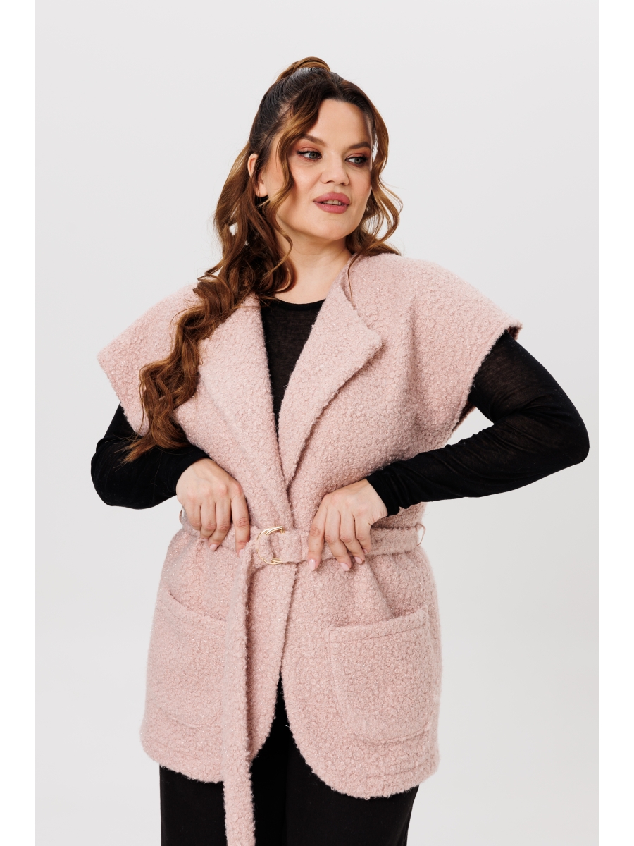 Женский жилет средней длины станет «must have» в гардеробе этого сезона. Сочетает в себе элегантность и функциональность, и подойдет к любому стилю одежды. Можно носить как поверх лонгслива, так и классической рубашки, водолазки; как с кроссовками, так и на шпильке. Жилет со спущенным плечом, выполнен из трикотажа с эффектом «букле» с небольшими вкраплениями люрекса, без подкладки, по переду два настрочных кармана, в комплект входит пояс.