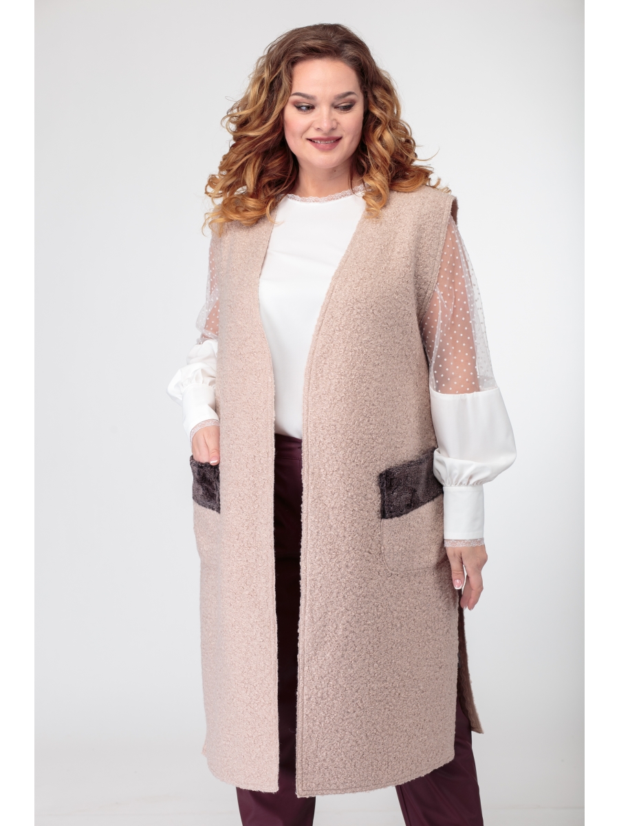Рост фотомодели при съемке молочного и капучино жилетов – 170 см. Размер фотомодели – 54. В розовом рост 171 см. Размер – 50.