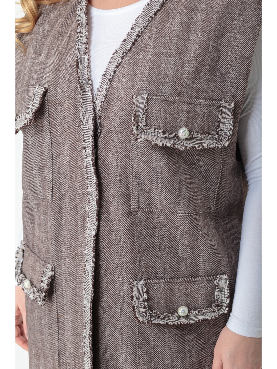 Свобода стиля и свобода кроя, комфорт и непринуждённость – это характеристики жилета, выполненного из плотной по грамматуре ткани.