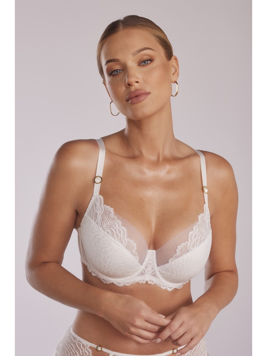 Кружевной бюстгальтер 1098-BC LUNA. Полупоролоновая чашка на кости. Модель с подкладкой из хлопка. Этот идеально проработанный дизайн позволяет бюстгальтеру придавать груди естественный вид и мягкую подтяжку. Благодаря элегантным деталям и тщательно подобранным материалам, модель Luna выглядит чрезвычайно стильно и современно. Утонченный дизайн и высокое качество изготовления делают ее не только функциональной, но и эстетичной. Несъемные регулируемые бретели, золотые аксессуары.