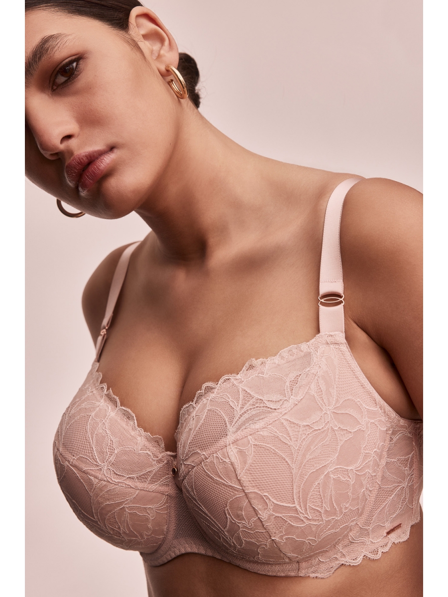 Роскошный бюстгальтер Glow на косточках. Чашки на тонком полупоролоне. Внутренняя сторона чашки проложена хлопковым трикотажем, наружная покрыта красивым кружевом. Бретельки регулируются по длине. На спине застежка на крючки-петли. Между чашек красивое украшение в виде подвески и атласного бантика. Чашки поддерживают и приподнимают бюст, сохраняя при этом его естественную форму.