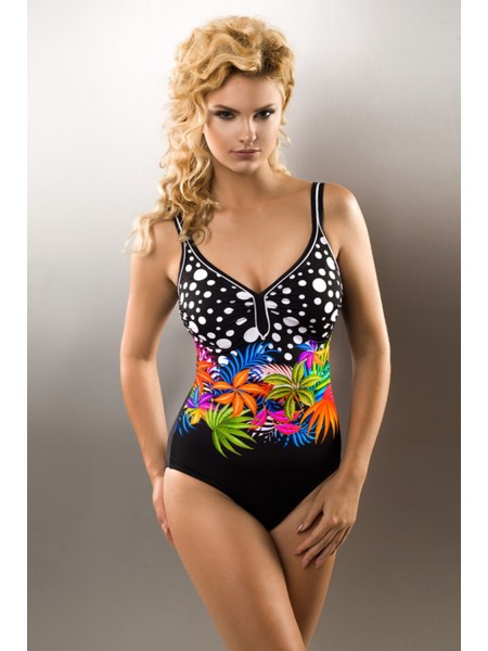 Черный с красивым принтом слитный купальник Luisa с плотной вшитой чашкой и глубоким вырезом на спине. Особый крой и специальная приятная для кожи подкладка позволяют использовать купальник для активного отдыха и занятий в бассейне. Фото обратной стороны купальника представлено в ознакомительных целях и показывает крой задней части, расцветка соответствует основному фото в карточке товара.