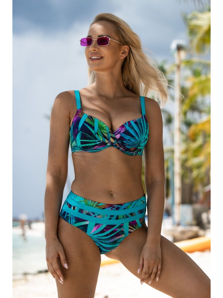 Купальник раздельный 370 PORTLAND/22. Бюст с несъемными бретелями, регулирующими по длине. Украшен ярким цветочным принтом. Формованная чашка на средней перемычке с легким пуш-ап эффектом. Для дополнительной поддержки боковые косточки. Застежка на спине. Трусы-слип с завышенной линией талии.